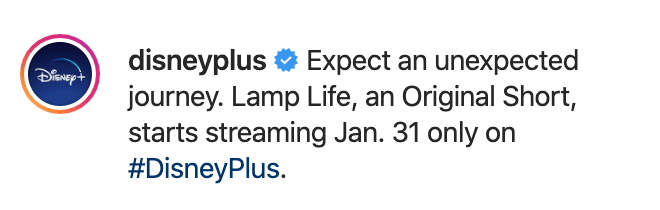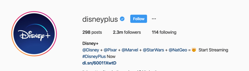 It’s interesting to see that on Instagram, Disney+ is utilizing the app’s features to the best of their ability, whereas on Facebook they really didn’t explore the extent to which they could build up sections like their bio to really give the brand identity a strong boost. Great blog post 🙂