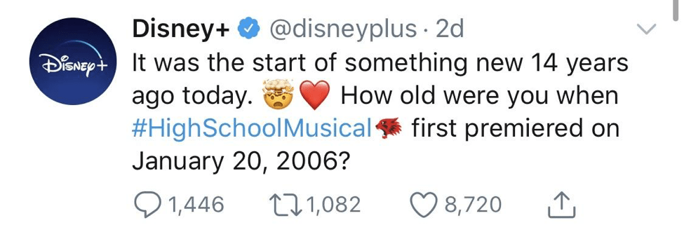 According to Gabby, one best practice that Disney Plus demonstrates on Twitter is the use of memes and other Twitter joke trends. Instead of jumping onto the trend after it’s way over, Disney Plus works the content while it’s still relevant. For example, right now there is a Twitter joke template going around that is “_____ can have _____ as a treat,” and Disney Plus tweeted “The Child can have a little frog, as a treat, ” a reference to Baby Yoda from the just released Mandalorian. Another practice that Disney Plus executes well is emoji use. Disney Plus uses emojis on all platforms, but doesn’t overdo it.